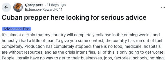 Interesting read in the reddit link about Cuba. My heart goes out to them .