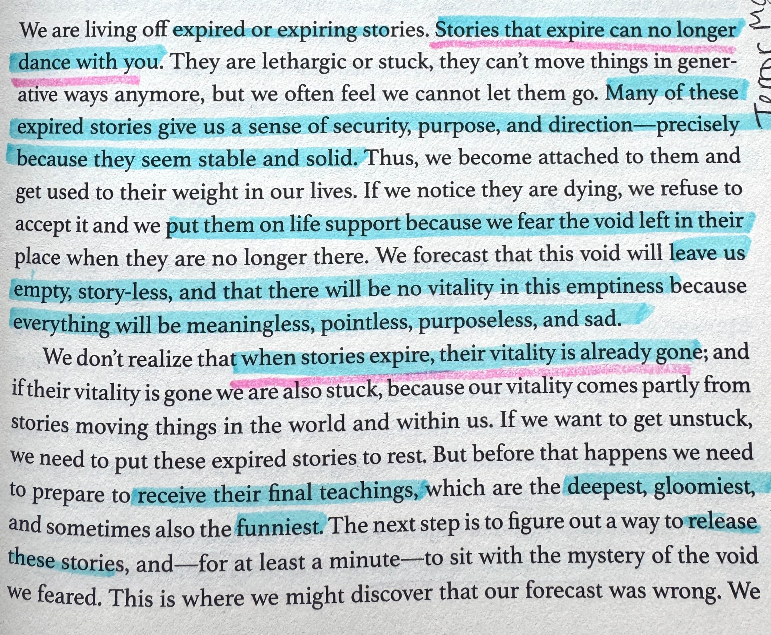 You mentioned that our peers seem down-in-the-dumps. I wonder if you’ll find this quote from Hospicing Modernity1 about expiring stories to be apt: